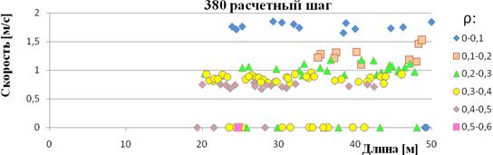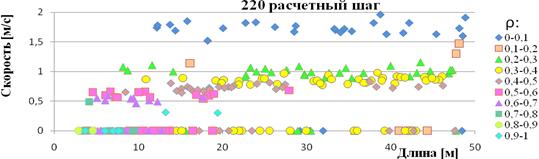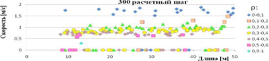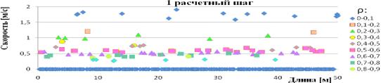 На 1 расчетном шаге в основном присутствуют малые скорости в силу больших