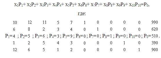 (0,0,0,0,0,990,620,510,390,900). Составим первую симплексную таблицу. В примере