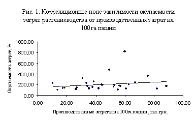 производственными затратами на 100 га пашни и окупаемостью затрат