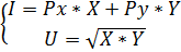 заданої функції корисності , яка має вигляд U = (XY)0.5=√(XY) або