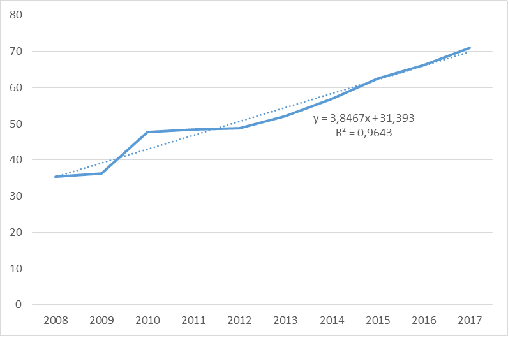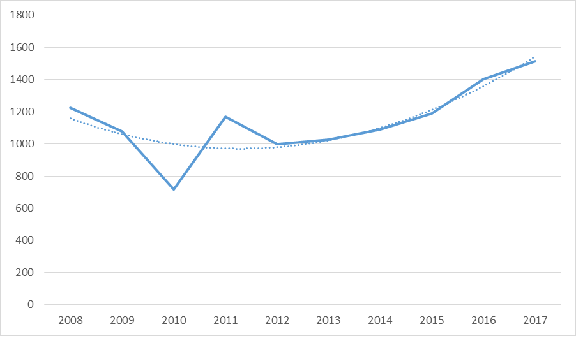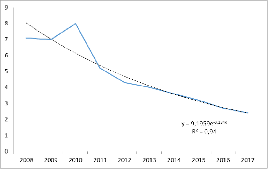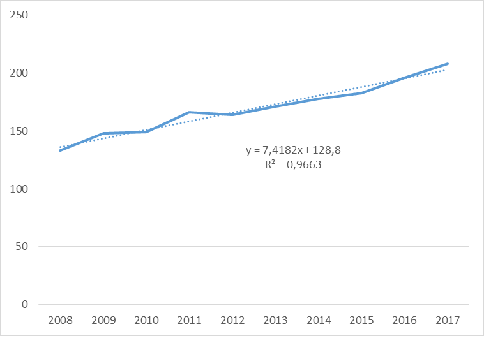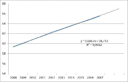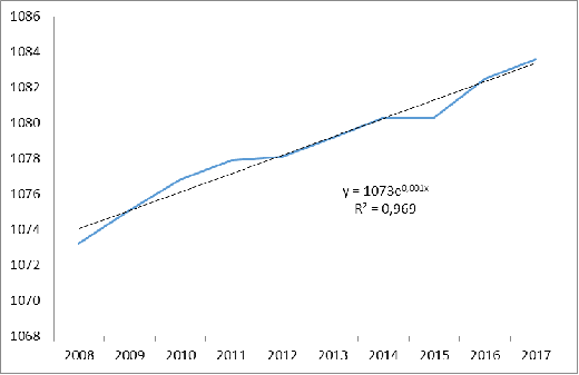 наблюдается положительная тенденция. Средний темп роста ЖФ составляет 1% в год.