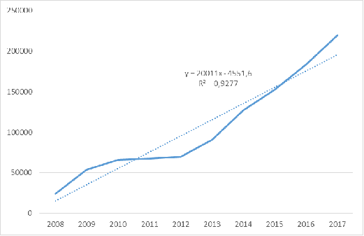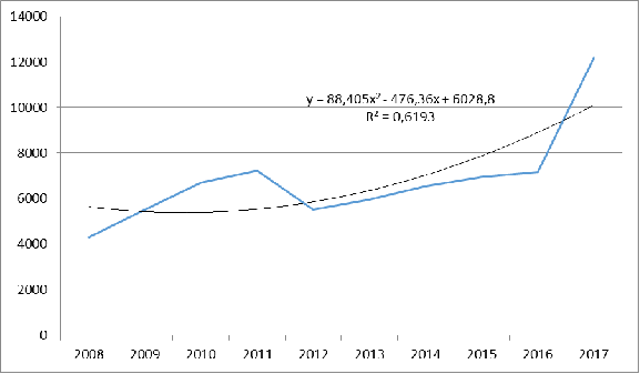 С вероятностью 99,8% к 2017 году ЖФ достигнет 65,5 млн.кв.м. Однако, количество