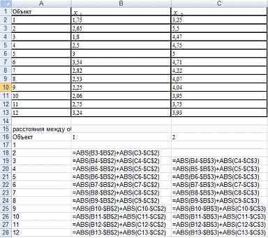 Мы считали расстояние как сумму модулей разностей между наблюдаемыми