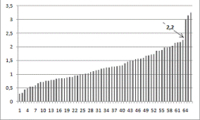 - 3,25. Причем три последних значения расстояния сильно отличаются от всех