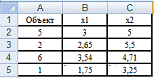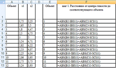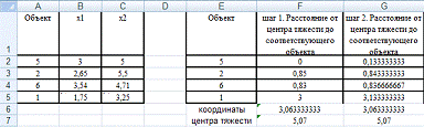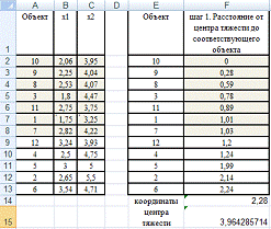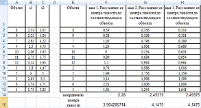 Возьмем объект 10 с координатами (2,06;3,95) в качестве центра тяжести