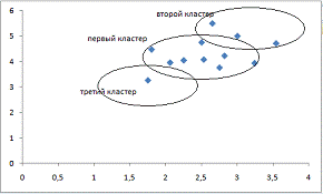 Итак, на рисунке представлены объекты, разделенные на три кластера.
