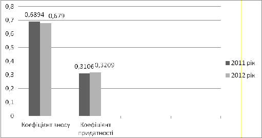 коефіцієнт зносу зменшився (у 2011 відносно 2010 року, у 2012 - відносно 2011