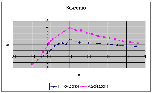 гораздо медленнее. Максимальное качество обеих досок наблюдается на угле в 10º,