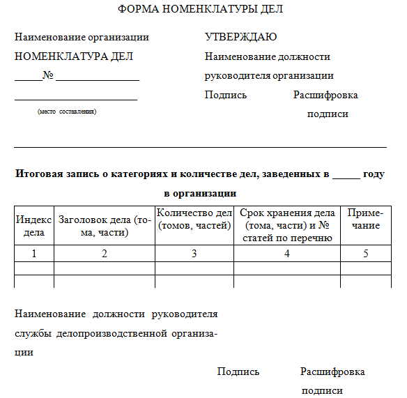 ведомственными). Кроме того, в каждой организации имеется номенклатура дел. Она