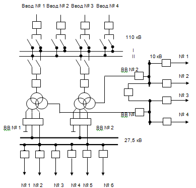 включает в себя распределительные устройства : 110кВ,27,5 кВ,10 кВ,6 кВ,СН.