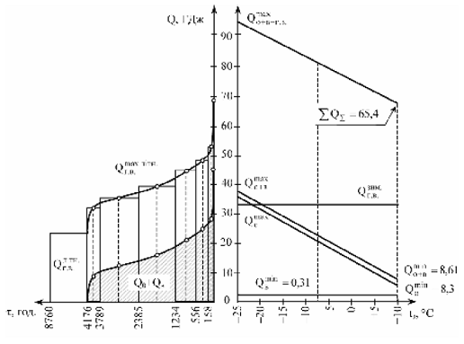витрати теплоти на опалення, вентиляцію, ГВП. Побудовані різноманітні графіки,