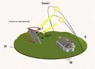 Рисунок 3- положение гелиостата относительно солнечных лучей.