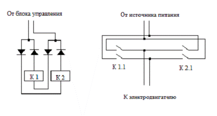 Данный блок состоит из 4-х диодов и двух электромеханических реле.