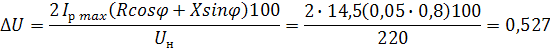 Полученное значение потери напряжения не