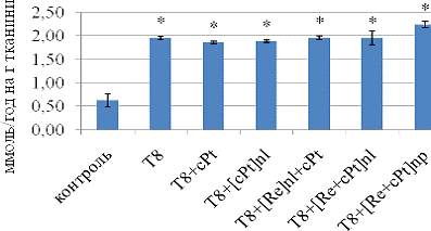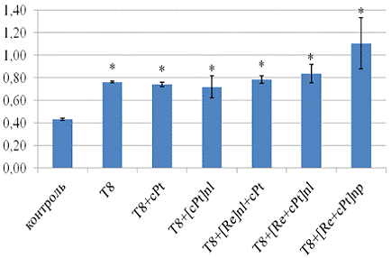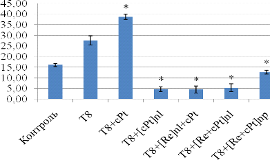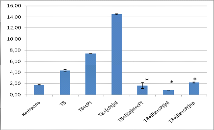 цисплатину у розчині та ренієвої сполуки у ліпосомній формі спостерігалося