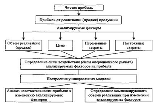 анализ, отслеживающий зависимость финансовых результатов фирмы от объемов