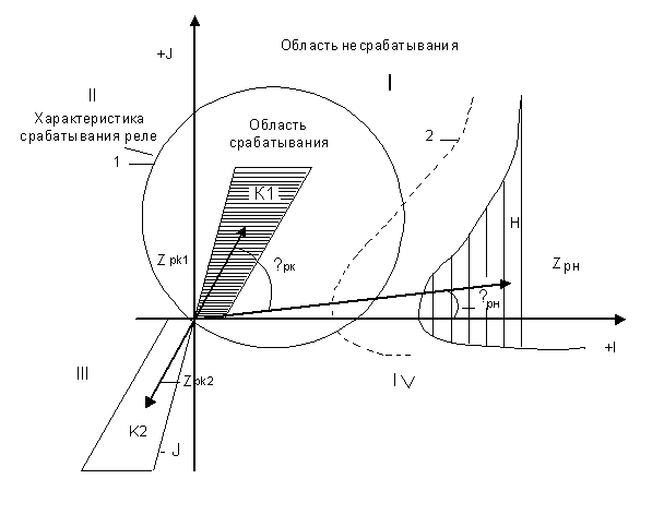 требуется, чтобы реле срабатывало только тогда, когда конец вектора Zp=Zpk попадет в область К1, и не срабатывало, если он