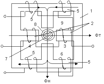 токовая обмотка; 5- обмотка напряжений; 3,4,6,9 -полюсы магнитопровода;