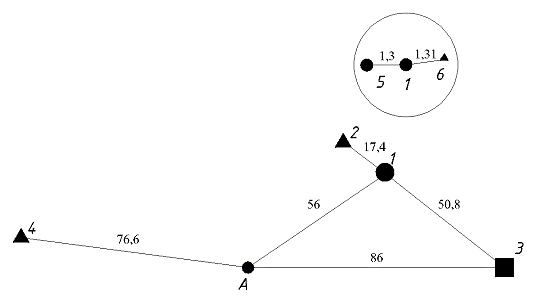 10 кВ. Два споживачі мають відносно невелику потужність і розташовані недалеко