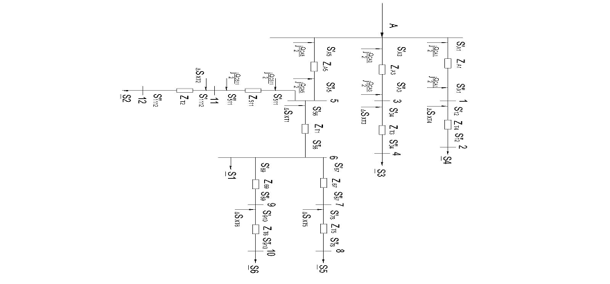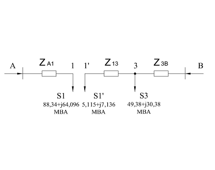 падіння потужностей в елементах мережі. Розглянуті величини напруги у вузлах