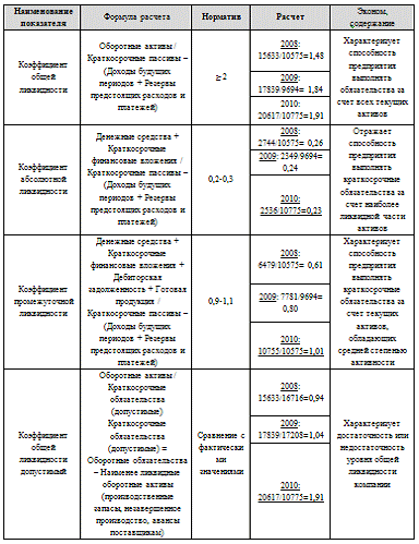 ликвидности увеличились и составили на 31 декабря 2010 г. по 0,97. Рост этих