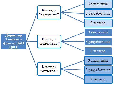 Томский филиал ЗАО «ЦФТ» внутри делится на