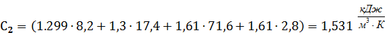 объемная теплоемкость продуктов сгорания,  1,5271,5311,5331,537