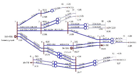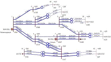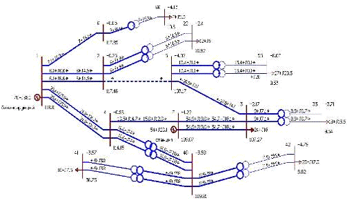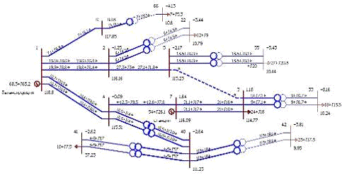 источника; напряжения в узлах не должны выходить за пределы (0,9-1,1)Uном; принятый вариант схемы при