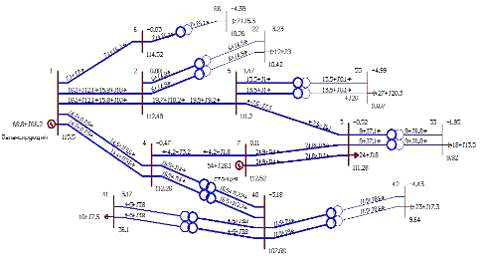 потокораспределения в нормальном режиме наибольших нагрузок для двух вариантов