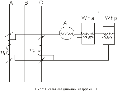 наиболее загруженной фазы при схеме соединения ТТ в неполную звезду. (рис. 2)