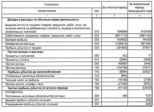 "Бухгалтерский баланс", форма № 2 "Отчет о прибылях и