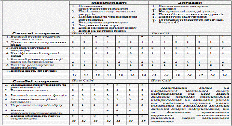 конкурентоздатності підприємства та його слабких сторін; пропозицій з