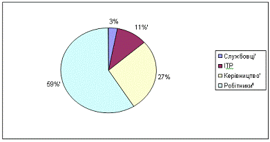 частку в структурі персоналу в організації займають робочі (58,82%), а найменшу