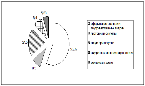 акции при покупке - 21,5 %) до более сложных (печатная - 5,28 %, листовки - 8,5