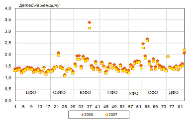 (в 2008 году - в 42). В 5 регионах он превышал 20‰, тогда как в 2002-2005 годах