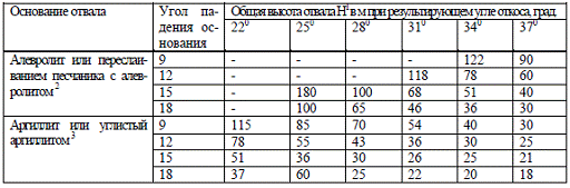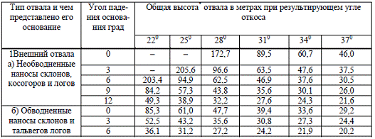 обеспечивающие устойчивость внешних отвалов, приведены в таблице 4.1.