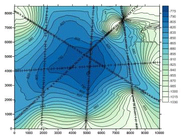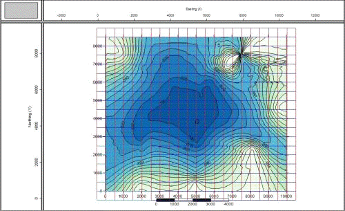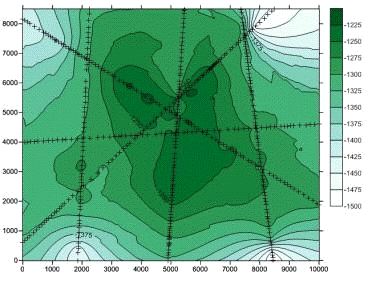 Рис. 4. Карта изогипс по горизонту O.