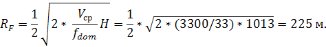 миграции находится в промежутке между значениями радиуса 1 - й зоны Френеля и