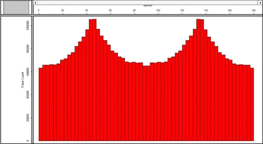 достаточно равномерным. Распределение трасс по азимутам