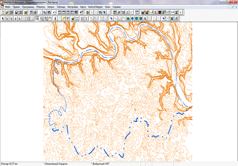 побудови нерегулярної мережі точок став шар з нанесеними горизонталями рельєфу