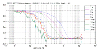 восточном ветре со скоростью 7,5 м/с поперечный радиус корреляции составил 9 м.