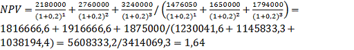 нашем случае индекс рентабельности ˃ 1, а значит проект принимается.