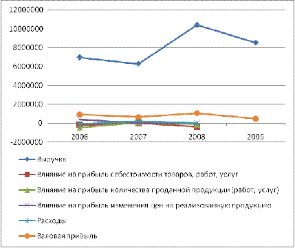 Рисунок 2 - Динамика прибыли от продаж и факторов, влияющих на нее