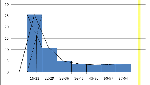 15 до 22х лет и встречается наиболее часто в данной совокупности.
