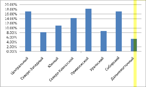 А наибольшие доли безработных в таких федеральных округах, как Приволжский