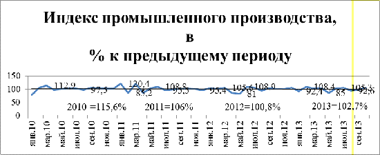 месяцев 2013 года составил 102,7% по сравнению с аналогичным