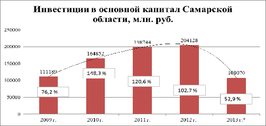 объема инвестиций в регион. На фоне спада инвестиций в целом по РФ в Самарской