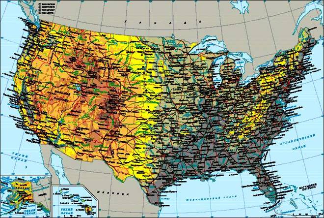 океанами и между Канадой и Мексикой. США – государство-гигант, ведущая