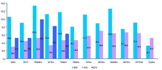кислоти хімічними підприємствами України у 2008-2010 рр., тис. тон