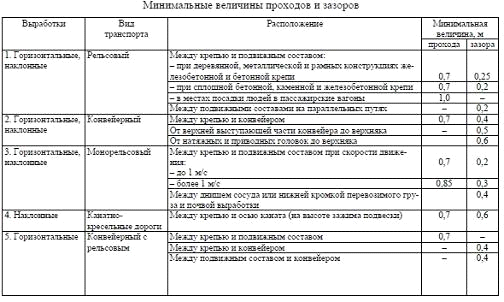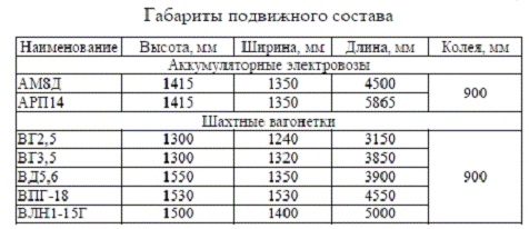 зазора между крепью и подвижным составом (табл.6);